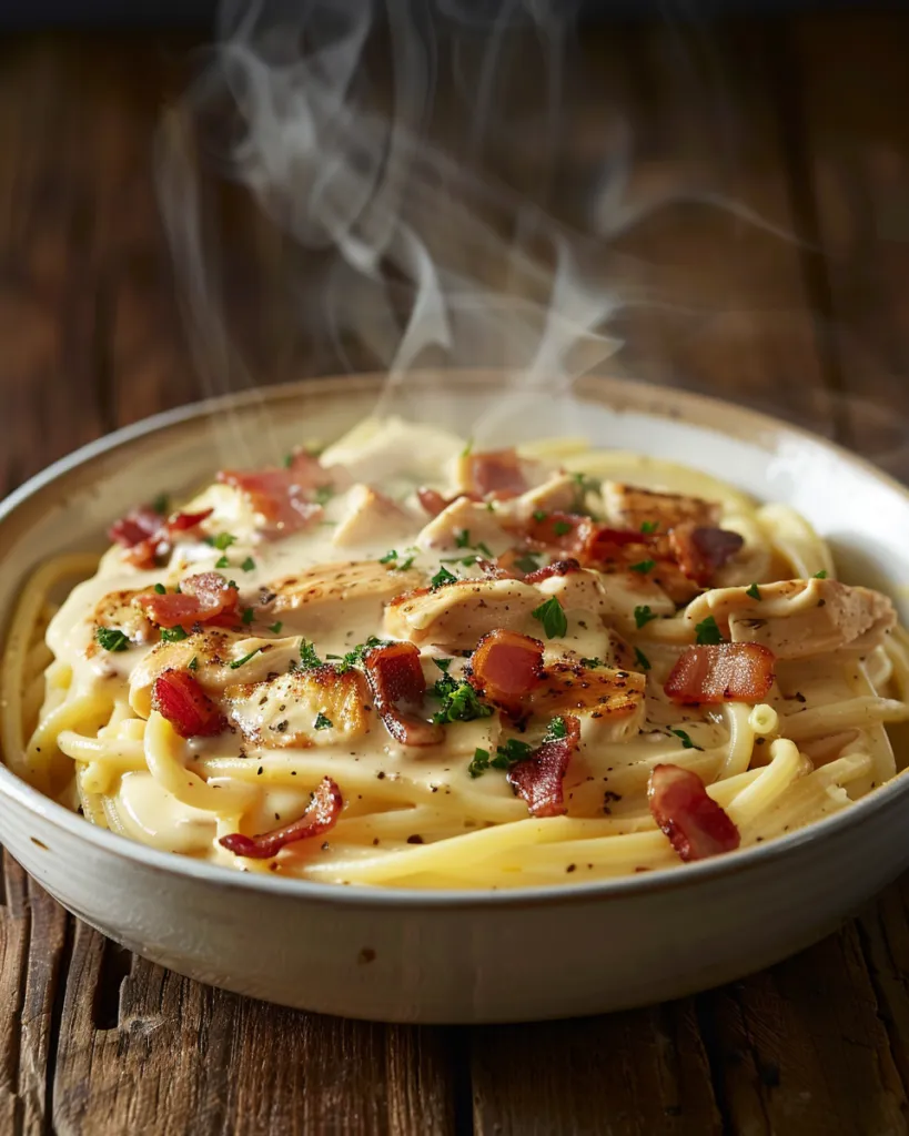 - Vegetarian Option: Omit the chicken and bacon, and add sautéed mushrooms and spinach for a vegetarian twist.